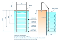 As escadas Sodramar possuem corrimão em aço inox polido e espelhado com diâmetro de 1 1/2"; com degraus anatômicos que acompanha o formato dos pés . Todos os modelos acompanham chumbador em ABS e borracha para encosto na parede da piscina.