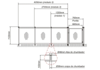Os modulos podem ser adquirido em dimensões de 1,35m, 2,70m e 4,05m. É composta por telas plásticas, e sustentadas em colunas de alumínio.