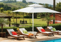 Os Ombrellones Oasis possuem mastro na lateral que cria vãos livres para maior integração quando abertos e discrição, quando fechados. Seu eixo com rotação 360° permite levar sombra com praticidade e rapidez para onde você precisar.